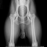 A total hip replacement is just what it sounds like—the dog's hip joint is removed and replaced with an artificial hip.