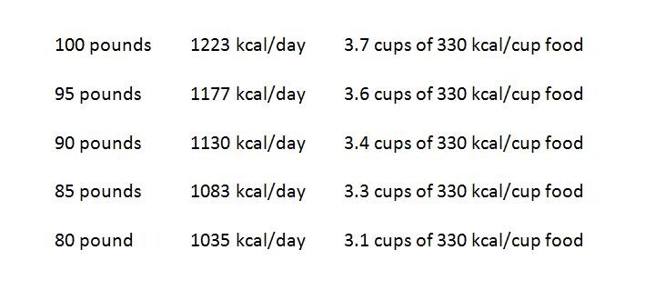 I’m afraid there is just no way to avoid doing some math when it comes to determining how much of a particular food you should feed to achieve weight loss. First, owners need to know how many calories their pets should be taking in. Your pet’s veterinarian is your best source for this information, but if you want to do the calculations yourself, here are some typical formulas: