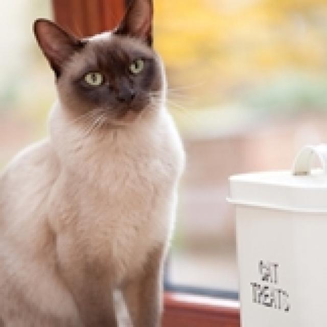 So if your cat is overweight, the first thing to do is toss out the treats. Use the time and money you’ll save to pamper your pet in other ways, like more play time, and feeding several meals throughout the day of a high quality, canned food designed for overweight cats (canned is best when it comes to weight loss).