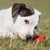 To remedy this, whenever we saw her calmly chewing a toy, or when she was playing tug with us, we would offer her a treat in trade for the toy. When she would trade it, we wouldn’t take the toy, we would just give her the treat and walk away. What we noticed initially was that she would not trade certain toys even for the very best food. It is clear that Julep loves food, so this was a red flag that her toys were very important to her and that she was at risk for developing Resource Guarding.
