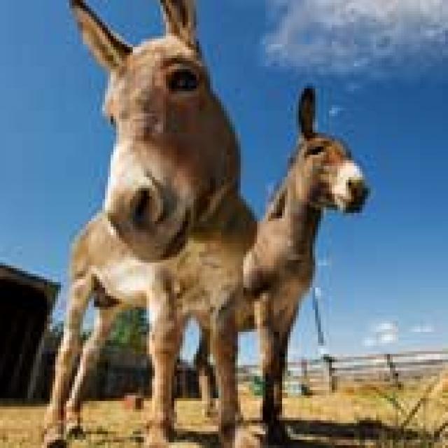 Many folks are familiar with the usual image of donkeys used as pack animals and beasts of burden. However, in developed countries of today, donkeys have gained more comfortable employment opportunities. For one, donkeys make great guard animals. Some sheep farmers have donkeys in the fields with the flock because donkeys will run off predators such as foxes and stray dogs. Alpaca owners also will sometimes employ a donkey or two as opposed to a guard dog.
