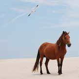 Chincoteague is a small island next to the much larger Assateague Island, which lies on the coasts of Maryland and Virginia. A skinny strip of land probably no more than 20 miles long, this ever-changing landscape of sand dunes and salt marshes is a National Seashore, wildlife refuge, and home to wild ponies. These animals have lived here in a feral state (not truly wild, as they came from domesticated stock), since the 1600s.