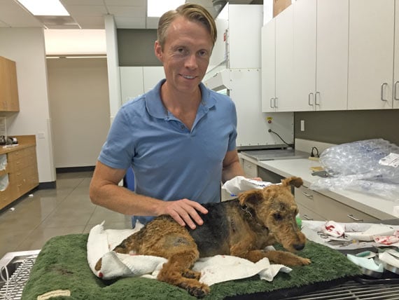 I sought the skills of my trusty technician Erin Zimmer from Veterinary Cancer Group to oversee Cardiff’s sedation. She closely monitored Cardiff’s respiratory and heart rate, blood pressure (normally maintained), and pulse oximeter (blood oxygen saturation) so I could focus on his surgery.