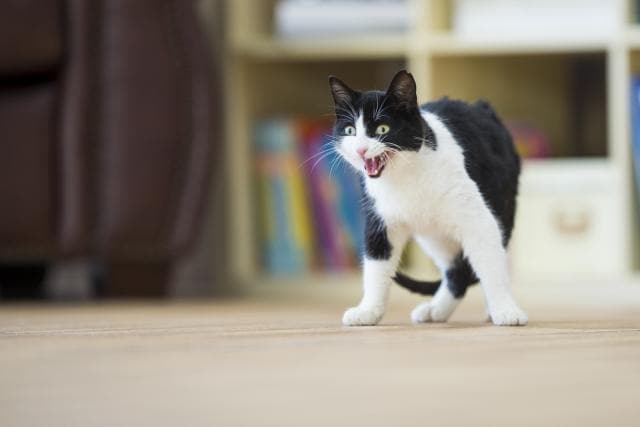 • Being in an unfamiliar situation or meeting an unfamiliar animal (for example, a new cat hissing at your other cats)