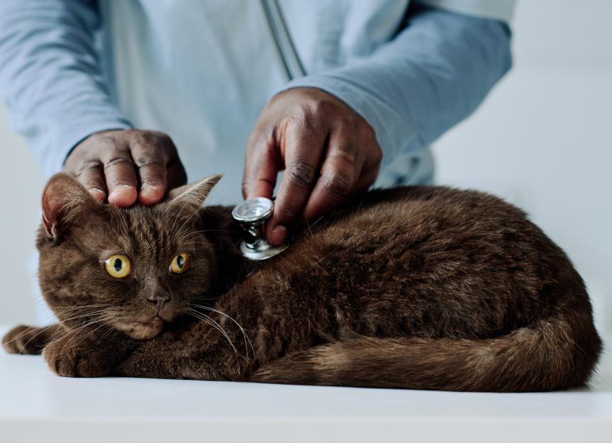 hypertension in cats; a cat is examined for hypertension by their veterinarian.