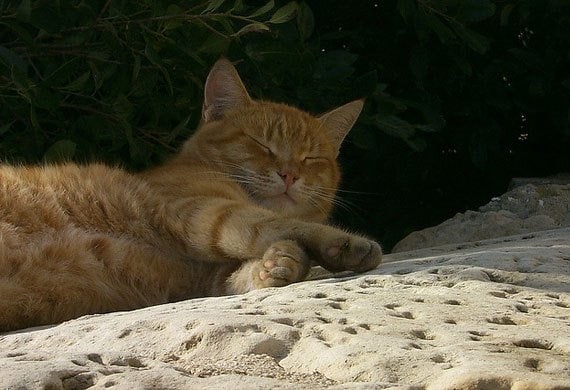 Try to provide a cool and shady spot in which the cats can rest. It’s been said that covering an area from the daytime sun can cool it down by over ten degrees. On those blistering summer days and muggy nights, a covered or canopied area will be a great blessing for feral and/or stray cats.