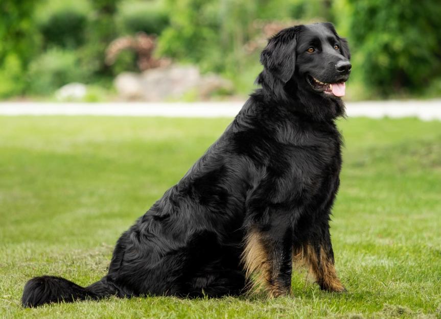 As an intelligent and active breed, Hovawarts often participate in search and rescue organizations, therapy dog activities, and service dog training. They’re recognizable by their long black-and-tan coat and floppy ears. They can also have blonde fur, which makes them look like Golden Retrievers.