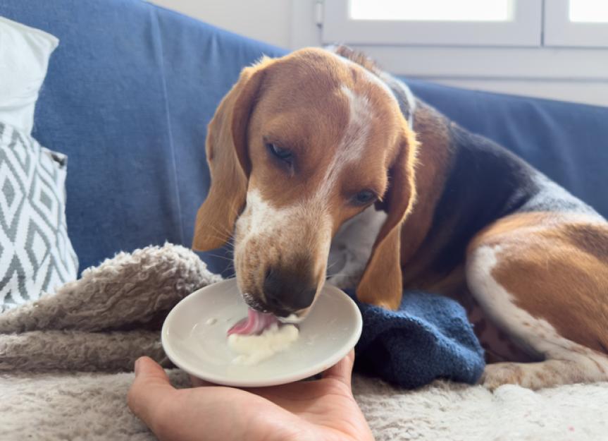 You can give your pet dog-safe yogurt: