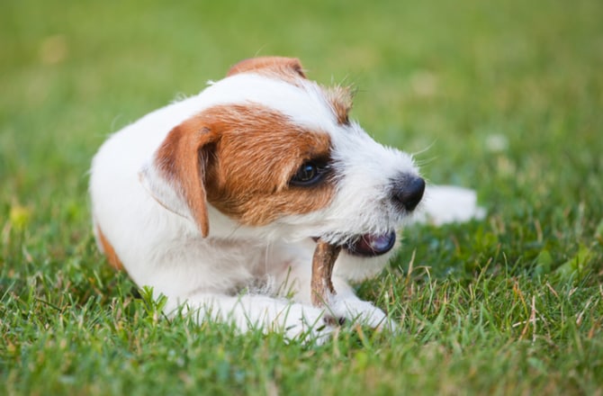 Both Greenfield and Buelow’s rule of thumb is that if you wouldn’t hit your knee with the bone or chew, it’s probably not a safe bet for your dog’s teeth. But that doesn’t mean that your furry best friend has to remain chew-less – your dog can still exercise his jaws on durable rubber treat-stuffable toys. Dr. Marisa Brunetti, VMD, suggests testing the toy’s flexibility with a fingernail; if it gives slightly to pressure, it’s probably fine for chewing.