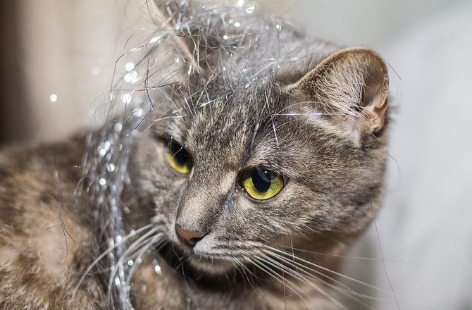 There always seems to be a holiday around the corner, and each one has its own variety of decorations, snacks and foods that can end up in the trash. While eating a Christmas decoration is probably just as risky as eating a Halloween decoration, relates Denish, some types of objects are particularly dangerous. Tinsel or anything string-like can cause a condition called a “linear foreign body.” Cats are particularly susceptible, but the condition does also occur in dogs. Linear foreign bodies are especially dangerous because they can become stuck and cut through the gastrointestinal tract, leading to potentially fatal abdominal infections. While some items may pass through your pet’s digestive system, others may require endoscopic or surgical retrieval by your vet, which can be risky as well as expensive.