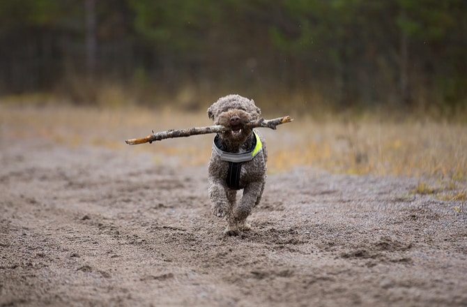 Stone recommends that dog owners check inside their dogs’ mouths regularly to make sure nothing is caught in their teeth, roof of their mouth or gums. The best approach is to begin working with their dog while he or she is young to get them used to their mouth being handled. A quick look with a flashlight can confirm a problem and can sometimes even be accomplished while the dog is panting, says Stone.