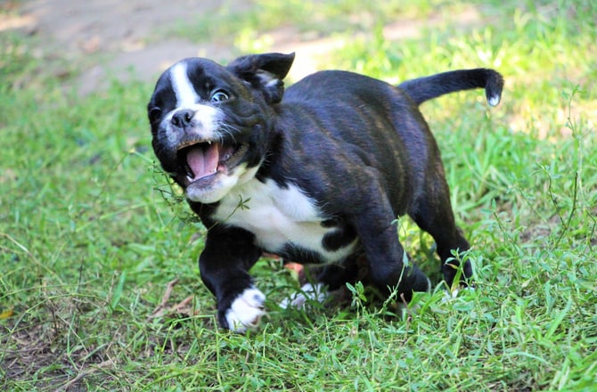 Puppies can get so caught up in playtime that they don’t realize that they have to go, and wait until it’s too late. It’s important to remember that intense physical activity can increase your pup’s need to go. The best way to avoid mid-game accidents is to take frequent potty breaks during the game, even if your pup had one right before you began. Heading outside every 20 minutes or so is not unreasonable during the potty-training period.
