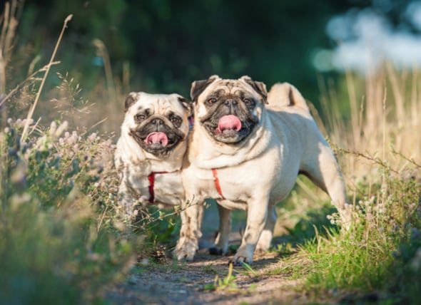 If you have a brachycephalic dog (dogs with shortened nose/faces like Pugs, Boston Terriers and bulldogs), you’ll want to take extra precautions when it comes to working out in the heat. These dogs can’t pant and cool themselves as efficiently as other breeds because their short noses give them a shorter airway, says Dr. Stephens.