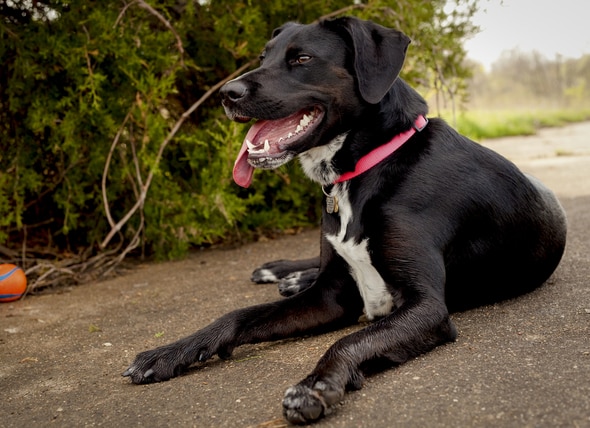 Besides the temperature, be mindful of the humidity, says Dr. Stephens. It will feel hotter to the dog if the humidity is higher due to the added moisture in the air. Dr. Stephens explains that dogs cool themselves by panting. When dogs pant, they breathe out moist air and inhale dry air, and evaporation helps keep them cooler. Air that’s dense with humidity is already moist and doesn’t help the dog cool down.