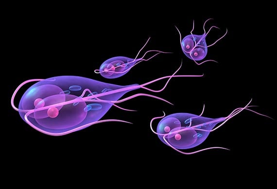 One of several microscopic parasites known to cause diarrhea in both dogs and humans, Giardia lamblia is an organism many dog owners are familiar with. Infected animals shed oocysts in their stool, which are hardy and can persist a long time in cool, moist environments, where they can then pass into water sources and back into a host.