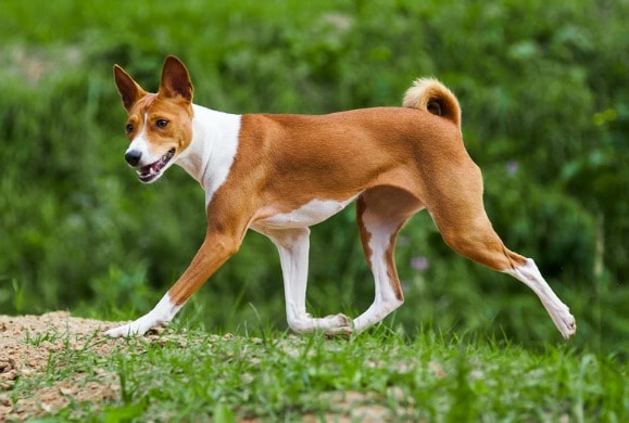 The barkless Basenji has a short coat and a cat-like affinity for grooming themselves. Because of this, they need fewer baths and are naturally less stinky than some other breeds.