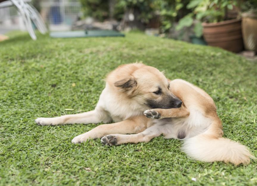 Keep your dog on year-round parasite preventatives to keep fleas, ticks, and mites off your pet. Options include Simparica TRIO, Advantage Multi, and K9 Advantix.