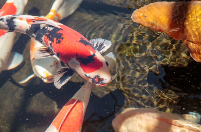 A koi fish’s bright vibrant colors and behaviors can provide a splash of color and activity to any outdoor pond.