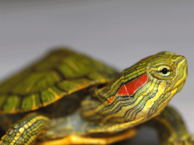 Red-eared sliders get their name from the red spot or wide red stripe that’s found behind each eye. There are other types of turtles that look similar to the red-eared slider but which are lacking the red “ear.” The patterning of red-eared sliders begins a bright green but can stretch, darken, and fade as the animal grows and ages.